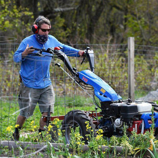 Thomas Paulsen, of Andover, holds the rototiller's wide handlebars and plows the dark earth at the urban farm, the largest in a network of community gardens operated by Groundwork Lawrence.