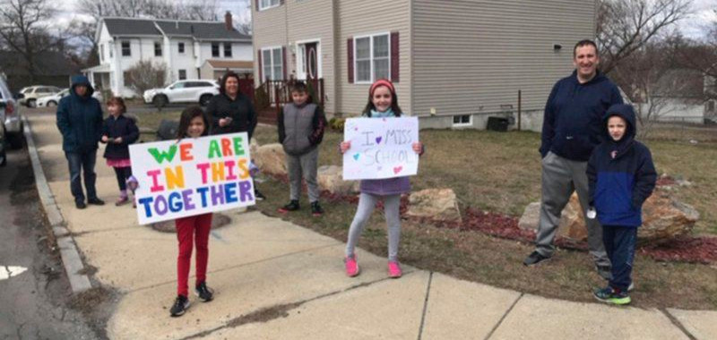 Teachers at the Robert Frost Elementary School gave a big showing of support to students Wednesday, letting families know they are thinking of them during these challenging times. School staff hosted a car parade, with a route starting at the school in Lawrence and then meandering through the Mount Vernon neighborhood. Teachers who organized the parade were Grace Tuttle, Emilie Cromer, Brianne Tirone, Craig Barnard, Leanne Smith, Mari Samperi, and Marrissa Wolfe. In an email, Barnard said the parade was organized as a way to show students and families their support during difficult times, even if from a distance. Teachers also got some support in return. "It was a great way for staff to come together and support one another as a teaching community," Barnard said. Lawrence police officers also got involved, providing the parade an official escort around the neighborhood. In all, 33 teachers took part in the event. Many students made posters to hold up as the parade passed by while waving from porches, front steps, through windows and in driveways, all maintaining safe distances. Community members without students at the school also came out to show support.